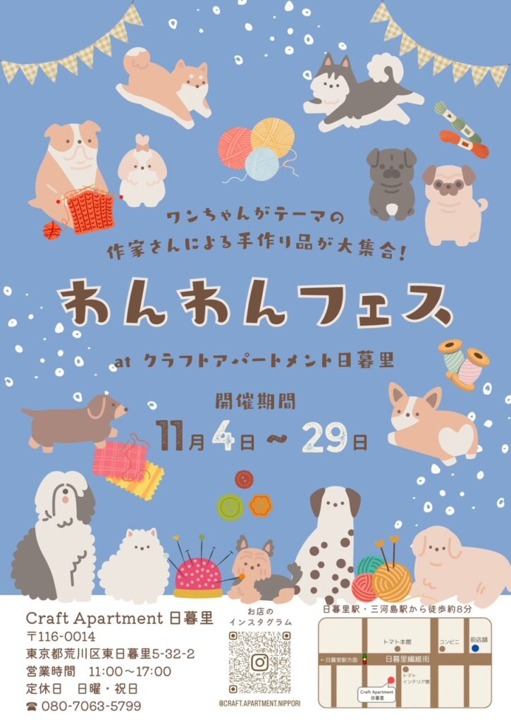 『わんわんフェス』のご案内 奥のテーブルでわんわんをテーマにした ハンドメイド品が大集合! 11/4(火)~11/29(土)
