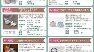 2月の「ワークショップ」ご案内 開催場所は「ふ...